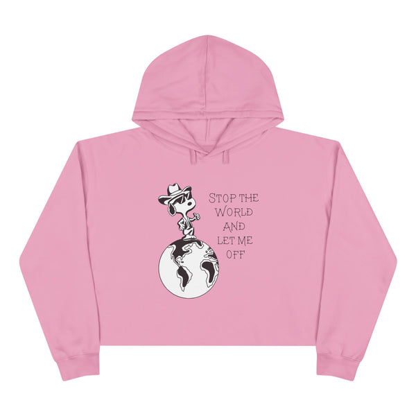 STOP THE WORLD AND LET ME OFF CROP HOODIE